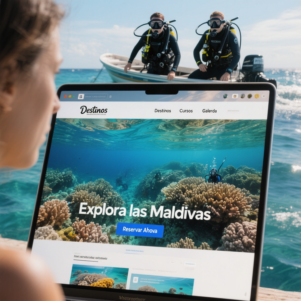 Ofrecemos cursos de buceo, inmersiones guiadas, renta de equipo y experiencias personalizadas, gestionadas desde nuestra página web para facilitar reservas, consultas y seguimiento de cada cliente de forma rápida y organizada.
