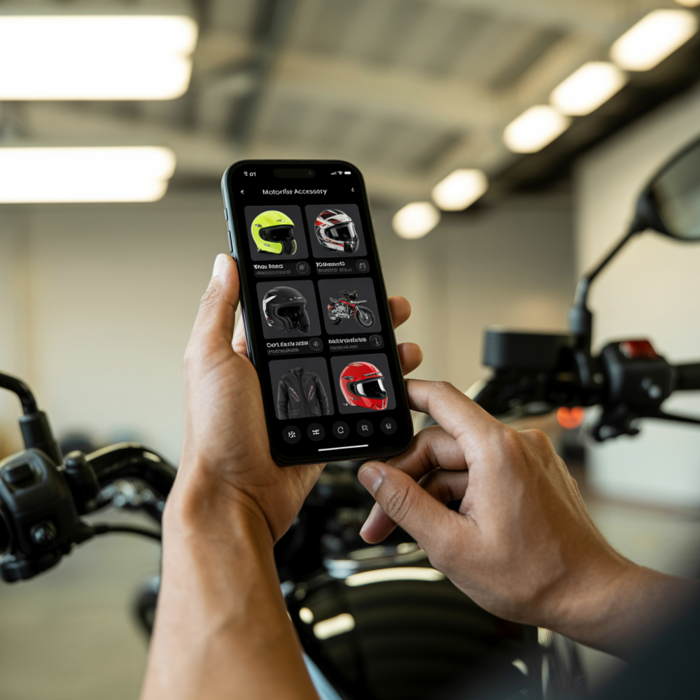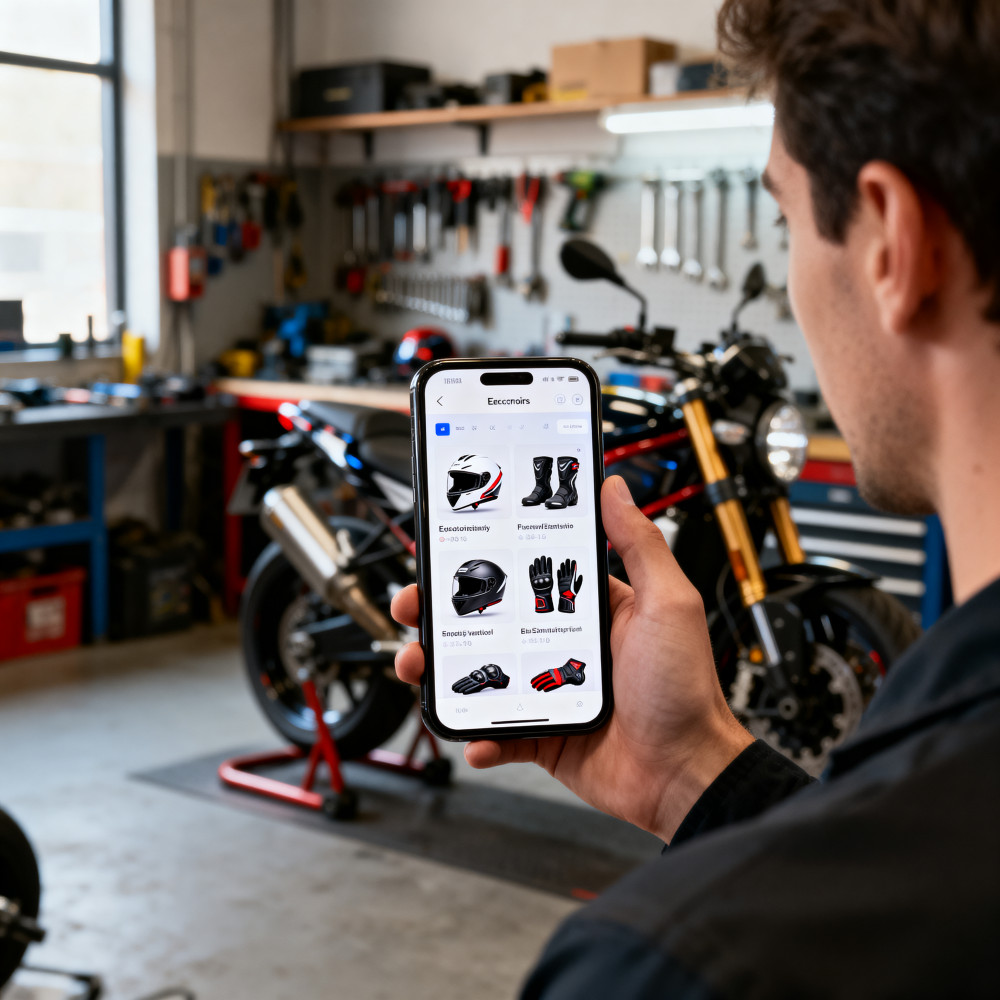 Ofrecemos venta de accesorios para motos con atención personalizada, catálogo actualizado y pedidos en tiempo real a través de nuestra página web integrada al CRM.