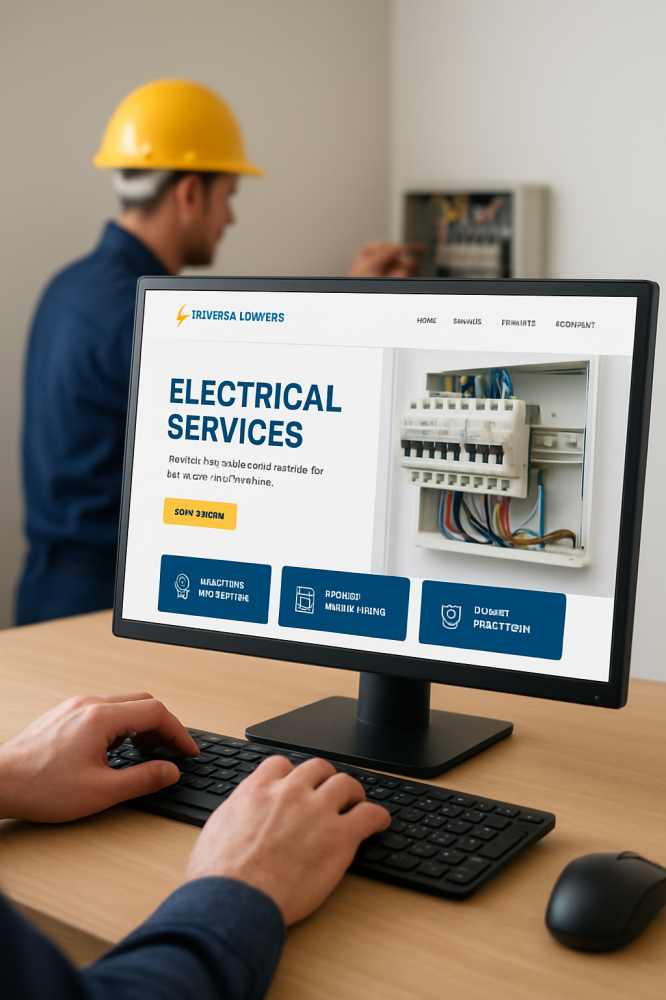 La página web integrada permite al electricista publicar servicios ilimitados, mostrar trabajos, captar nuevos clientes y administrar perfiles de clientes, fortaleciendo la presencia digital y facilitando la comunicación directa.