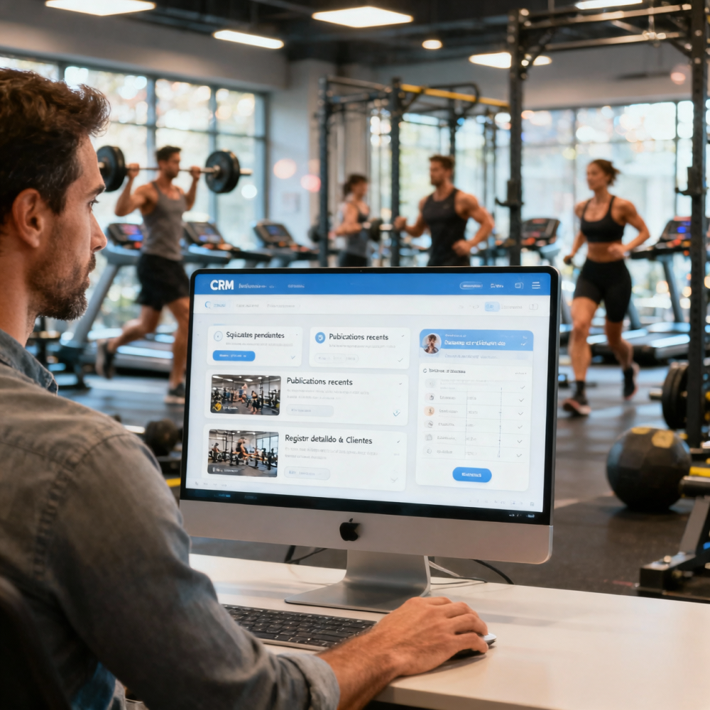 El CRM permite administrar clientes, planes de entrenamiento, roles, usuarios y sucursales de manera centralizada, optimizando la comunicación, seguimiento y productividad, asegurando un servicio profesional y personalizado para cada cliente.