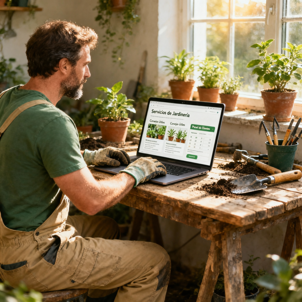 Con tu propia página web, puedes registrar clientes, mostrar tus servicios, compartir consejos de jardinería y recibir pedidos en línea, mejorando la comunicación y presencia digital de tu negocio.